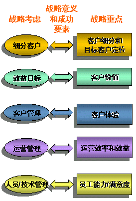客戶關(guān)系管理戰(zhàn)略一般由以下5個部分的戰(zhàn)略考慮和相關(guān)的戰(zhàn)略重點(diǎn)構(gòu)成: