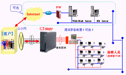 近來客戶關系管理逐漸成為注目的焦點,客戶服務中心(即呼叫中心)已不再是電信企業(yè)、航空公司、商業(yè)銀行等大型企業(yè)與用戶密切交互的媒體,許多中小型企業(yè)也逐漸認識良好客戶關系的提升已成為競爭時代的致勝關鍵。同時,呼叫中心經(jīng)過幾年的發(fā)展與摸索,產(chǎn)品的穩(wěn)定性和價格已經(jīng)鎖定在企業(yè)可以接受的范疇。在"完美服務質量""對外有效提高客戶服務質量,擴大收入;對內大幅提高員工生產(chǎn)力,降低成本"的巨大期待下,各企業(yè)開始了建設呼叫中心的步伐,也開始了對合作伙伴的挑剔選擇。而由日本沖電氣(OKI)公司提供基于CTI產(chǎn)品CTstage構筑的UnPBX型呼叫中心,為中國的中小型企業(yè)量身打造了完美的客戶服務中心。