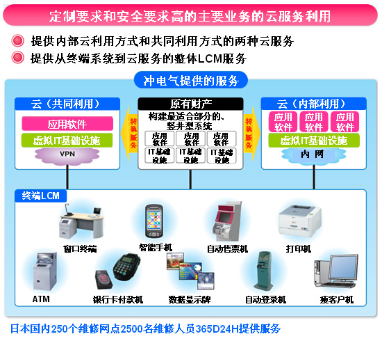 沖電氣為滿足客戶實(shí)現(xiàn)云服務(wù)的需求,靈活運(yùn)用LCM(注1)服務(wù)等客戶服務(wù)業(yè)績(jī)、經(jīng)驗(yàn),以及日本國(guó)內(nèi)250個(gè)維修網(wǎng)點(diǎn)、2500名維修人員的機(jī)制,積極向客戶提供性價(jià)比優(yōu)越的安全放心的服務(wù)。另外,沖電氣還將繼續(xù)完善服務(wù)內(nèi)容,以滿足客戶的希望和需求。