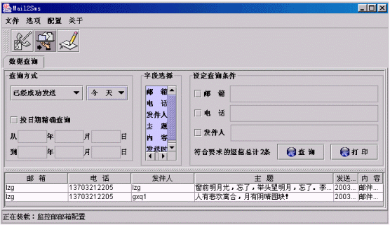 ·也可以通過給定查詢條件來查詢某項內容,如針對某個郵箱、手機電話或發(fā)件人,方法是通過點擊左邊的小方框來選中,然后輸入相應內容即可,如下圖: