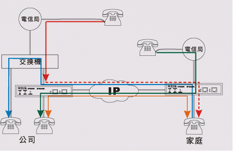 在家里亦可利用公司FONEMOSA遠(yuǎn)易通撥出電話及收聽語音信箱 下班后若需處理公務(wù)而需撥打國際或長途電話,裝設(shè)FONEMOSA遠(yuǎn)易通之后便可將家里的電話當(dāng)成辦公室分機(jī),舉凡撥接國際或長途電話、其它同仁分機(jī),或者聽取您的語音留言等等都可。若是跨國性企業(yè)在海外有多個(gè)據(jù)點(diǎn),可以在各據(jù)點(diǎn)安裝FONEMOSA遠(yuǎn)易通,這樣既便在家里就如同在各據(jù)點(diǎn)上班一樣。(圖標(biāo):On-Net