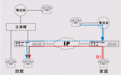 可將家里或辦公室電話轉(zhuǎn)接至所住旅館之FONEMOSA遠(yuǎn)易通 將FONEMOSA遠(yuǎn)易通在旅館房間裝設(shè)好后,可以設(shè)定將家里或辦公室的 FONEMOSA遠(yuǎn)易通電話轉(zhuǎn)至旅館房間,這樣您可以在旅館房間里免費(fèi)接聽家里或公司的電話。(圖標(biāo):Transit-in