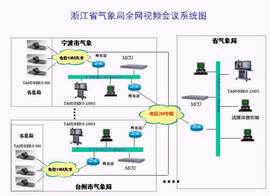 浙江省氣象局為了響應(yīng)全國氣象系統(tǒng)的號(hào)召,充分利用自己網(wǎng)絡(luò)資源的優(yōu)勢(shì),于2003年初經(jīng)過系統(tǒng)方案的征集、產(chǎn)品的反復(fù)測(cè)試,最終確定了由華夏科技代理的挪威TANDBERG的視頻終端,并于2003年9月份簽訂了一期采購合同,共計(jì)40多套視頻終端。