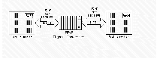 因?yàn)樾帕顦?biāo)準(zhǔn)不同,部分國外通信設(shè)備無法與國內(nèi)通訊網(wǎng)互通互連,SPAS-2000可編程交換機(jī)接口豐富,支持信令標(biāo)準(zhǔn)全面,成本低廉,可以為中國一號信令、七號信令、ISDN PRI(E1/T1)、環(huán)路信令、接入網(wǎng)V5信令等標(biāo)準(zhǔn)之間的轉(zhuǎn)換提供靈活完整的解決方案,同時(shí)當(dāng)輸入和輸出的中繼接口不同時(shí),其語音編碼可能不同,可利用多功能信號音板實(shí)現(xiàn)語音編碼的轉(zhuǎn)換(例如可以實(shí)現(xiàn)A LAW和U LAW之間的語音互轉(zhuǎn))。連接圖見圖1: