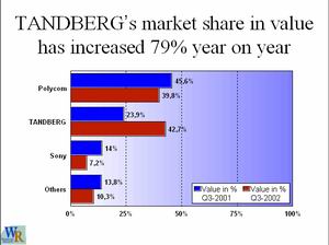 TANDBERG視頻會議終端產品是挪威泰德集團(TANDBERG Group)下屬視訊公司(TANDBERG Telecom)的定位于高端市場的視頻會議系統(tǒng)終端產品,亦就是說,TANDBERG終端是挪威泰德公司專為出錢要買最好終端的客戶們設計、生產和制造的。TANDBERG未在挪威以外設立任何分廠,每臺設備必須經過挪威工程師嚴格檢驗,從而保證每臺設備的最高可靠性(當然海關進口成本要高一些了)。TANDBERG全系列產品均采用泰德自己研發(fā)的專用視頻芯片,而不是采用第三方芯片加以集成,從而保證了從高端T8000至低端T500的所有產品性能表現均很優(yōu)秀。