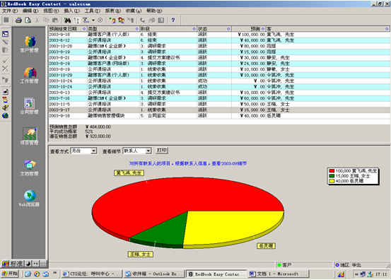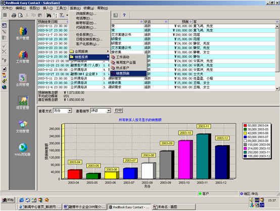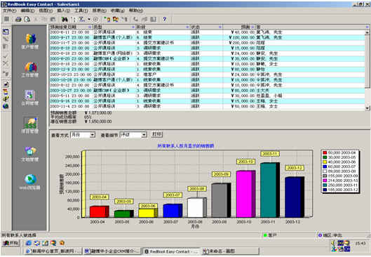 可根據(jù)月份、項目階段、聯(lián)系人、客戶、項目級別、銷售代表等條件進行查看項目細節(jié),其中有詳細項目情況列表,也包括圖示。