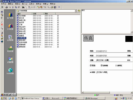 文檔管理模塊主要是將公司內(nèi)部應(yīng)用的公共文檔進行統(tǒng)一管理。比如:各類合同模板、銷售工具、報價單、訂單、規(guī)章制度、知識管理、任務(wù)申領(lǐng)單、傳真封面等。(如下圖)