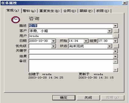 對與客戶進行的活動可進行任務(wù)跟蹤和警鈴提醒。