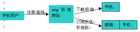 用戶通過手機注冊我們的另一項服務--"無限郵"業(yè)務,可以得到我們?yōu)榭蛻魷蕚涞氖謾C郵箱系統(tǒng),通過這個系統(tǒng)用戶能夠實現(xiàn)用手機終端完成郵件的收發(fā)功能,更重要的是用戶可以以這套系統(tǒng)為中介實現(xiàn)多媒體信息的從網(wǎng)站的下載和對手機終端的發(fā)送。