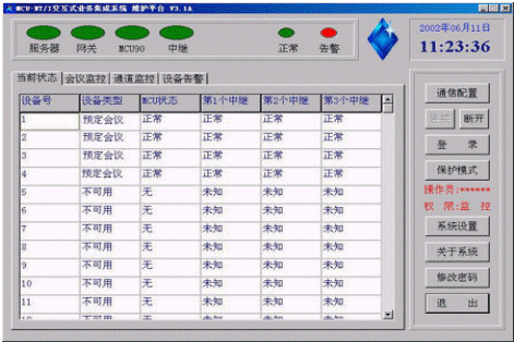 狀態(tài)監(jiān)視:會議秘書可以監(jiān)視每個會議成員的當(dāng)前狀態(tài)。如:空閑、呼叫遇忙、正在振鈴、取機應(yīng)答、呼入等待、正在通話等狀態(tài)。各種狀態(tài)以不同的顏色顯示在會議控制臺上。