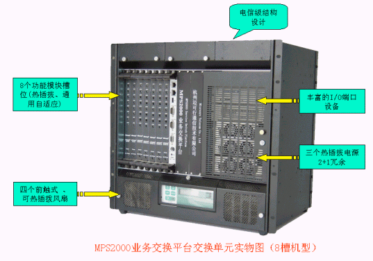 。。MPS2000業(yè)務(wù)交換平臺立足當(dāng)前,面向未來,適合組建一個科學(xué)先進(jìn),經(jīng)濟可靠的通信網(wǎng)絡(luò),并為各系統(tǒng)集成廠商提供了構(gòu)筑從電話交換到電話會議、電話調(diào)度、呼叫中心、語音信箱、數(shù)字錄音、回聲消除、IP網(wǎng)關(guān)等一系列解決方案的基礎(chǔ)平臺。使得系統(tǒng)集成廠商為最終客戶提供度身定做的全面解決方案更加方便簡單。