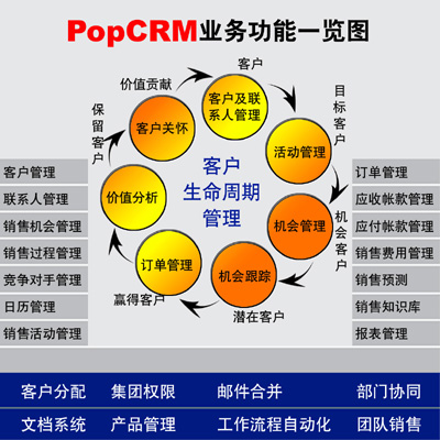 PopCRM吸收了國內(nèi)外先進(jìn)的管理思想,以客戶的需求為根本,以應(yīng)用價(jià)值為核心,聚焦銷售環(huán)節(jié),對客戶資源統(tǒng)一管理,規(guī)范銷售行為;對銷售進(jìn)行分析預(yù)測,提供決策依據(jù);對客戶進(jìn)行全面分析,提供客戶關(guān)懷,吸引并留住客戶,全面提高企業(yè)的盈利能力。