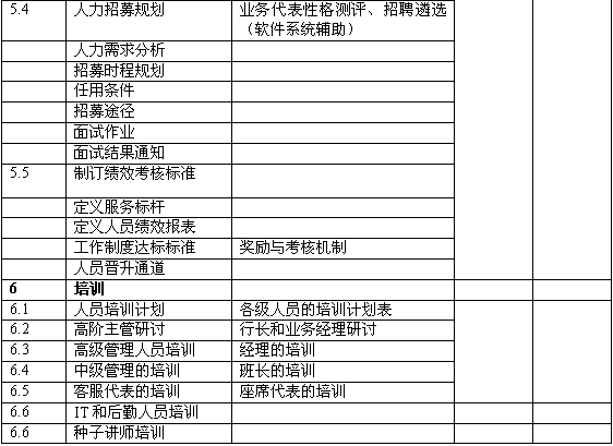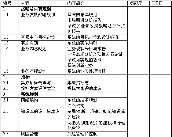 6.提出了未來客戶滿意度、分流柜面比率、產(chǎn)品促銷量等方面的量化比率;針對(duì)客服中心的主要業(yè)務(wù)提供量化的目標(biāo),并提出達(dá)成目標(biāo)的前提條件;對(duì)未來人員和系統(tǒng)規(guī)模提供量化預(yù)估。