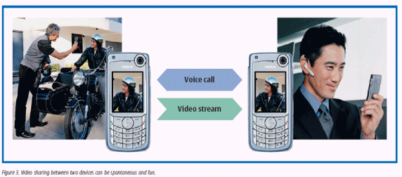 在最近一次諾基亞委托進(jìn)行的IP多媒體研究中顯示,消費(fèi)者喜歡增加了視頻共享的視頻電話,有趣的手機(jī)外觀被看作是非常重要的,而視頻共享也被認(rèn)為是非常有用的,被看作是基于視頻短信的MMS的一個(gè)明顯的進(jìn)步。消費(fèi)者喜歡去共享的時(shí)刻是:例如在假期里,購(gòu)物、舉家外出旅行,或者是一個(gè)周末的夜晚。通過視頻共享來展現(xiàn)你的位置及同行人員,可以確保人身的安全。同樣,視頻共享技術(shù)也可以應(yīng)用于商業(yè)領(lǐng)域,如財(cái)產(chǎn)狀態(tài)監(jiān)視和遠(yuǎn)程檢查野外工作等。