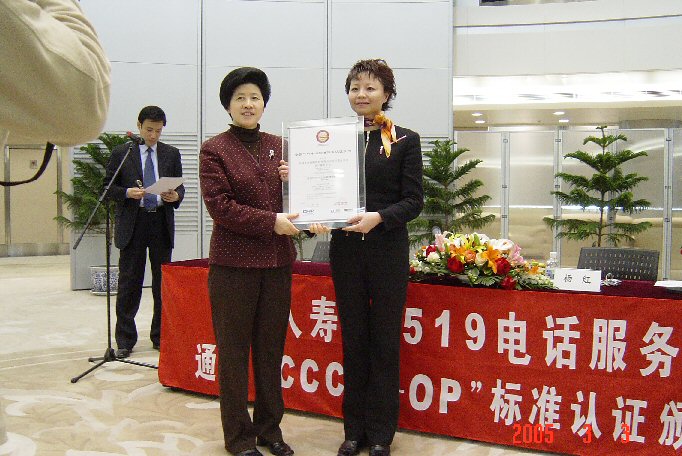 中國人壽保險股份有限公司業(yè)務管理部副總經(jīng)理楊紅在頒證儀式上發(fā)表了熱情洋溢的講話。她說,中國人壽保險股份有限公司在中國的壽險業(yè)中具有舉足輕重的地位、良好的業(yè)績表現(xiàn)和遍布全國的機構(gòu)網(wǎng)絡,一貫秉承"用專業(yè)和真誠贏得感動"的服務理念,力求通過"熱誠、規(guī)范、準確、便捷"的服務回報廣大客戶多年以來的支持與信賴。中國人壽的呼叫中心自2001年建立以來,伴隨著公司的快速發(fā)展,在總分公司各級領導的關心、支持下,在各級中心管理人員和客服代表的共同努力下,在改善公司服務水平、提高客戶滿意度、促進公司業(yè)務發(fā)展等方面正發(fā)揮著越來越重要的作用,呼叫中心自身也取得了長足的發(fā)展。