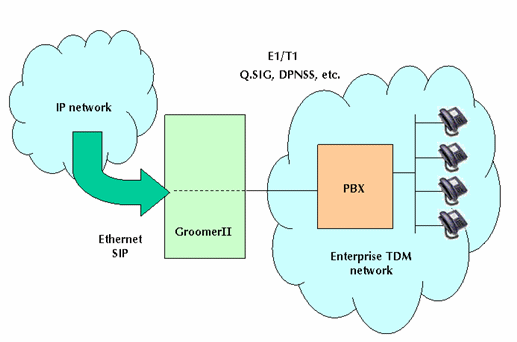 GroomerII用作媒體網(wǎng)關(guān)時(shí),為客戶提供了巨大的靈活性。它能支持眾多的、傳統(tǒng)上必須由單獨(dú)的軟交換/呼叫管理器完成的功能,如:路由規(guī)劃和計(jì)費(fèi)特性。此外,H.323和/或SIP協(xié)議可以和TDM信令同時(shí)進(jìn)行轉(zhuǎn)換。