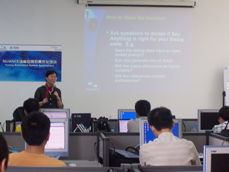 Nuance·科大訊飛聯(lián)合實(shí)驗(yàn)室自成立以來始終重視與合作伙伴的協(xié)作關(guān)系,此次組織的"隨意說"與"準(zhǔn)確路由"技術(shù)培訓(xùn),針對(duì)目前倍受關(guān)注的應(yīng)用方向,比如娛音門戶、語音搜索引擎等,提供了強(qiáng)有力的技術(shù)支撐,使得合作伙伴可以根據(jù)需要開發(fā)出所希望的自然語音應(yīng)用。參加培訓(xùn)的工程師表示培訓(xùn)內(nèi)容非常適應(yīng)語音應(yīng)用發(fā)展需要,為應(yīng)用開發(fā)奠定了良好的基礎(chǔ),并希望Nuance與科大訊飛能夠持續(xù)地將此類專業(yè)技術(shù)培訓(xùn)開展下去,給大家的工作提供支持與幫助,共同推動(dòng)語音技術(shù)的應(yīng)用不斷深化,并帶來更多價(jià)值。