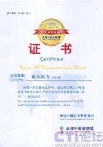 近日,在CIPCA 2008 中國IP通信大獎評選中,科大訊飛以領先的技術實力和卓越的市場表現喜獲最佳語音識別合成提供商(國內)獎項。本次獲獎再一次表明科大訊飛在語音合成到語音識別技術領域的優(yōu)勢地位得到行業(yè)的一致認可。