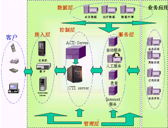 通過(guò)租用信息智能交互平臺(tái)的坐席資源,企業(yè)可以迅速、方便地建立自己的客戶(hù)服務(wù)中心,而不需為規(guī)劃、技術(shù)方案、場(chǎng)地、特服號(hào)申請(qǐng)、人員培訓(xùn)等自行建立客戶(hù)服務(wù)中心所面臨的種種困難。企業(yè)客戶(hù)服務(wù)利用鐵通本地網(wǎng)絡(luò)資源及VPN技術(shù),可將企業(yè)局域網(wǎng)與信息智能交互平臺(tái)建立網(wǎng)絡(luò)通道,使得企業(yè)租用的客戶(hù)服務(wù)中心可以直接關(guān)聯(lián)到企業(yè)已有的業(yè)務(wù)系統(tǒng)、網(wǎng)絡(luò)系統(tǒng)中去,實(shí)現(xiàn)信息充分互通、資源共享,也有利于企業(yè)自身的二次開(kāi)發(fā)。