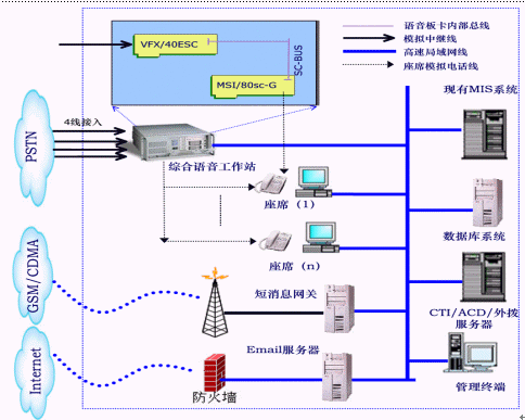 該95598客服系統(tǒng)采用世界知名品牌的Intel Dialogic板卡,構(gòu)建在強(qiáng)大的、開放的CTI應(yīng)用開發(fā)平臺(tái)AnyTouch上,開發(fā)出符合縣級(jí)供電公司的客戶服務(wù)業(yè)務(wù),并完全根據(jù)《國(guó)電95598客戶服務(wù)中心系統(tǒng)規(guī)范》,通過靈活、方便的圖形化開發(fā)工具或接口,與供電公司已有的用電MIS系統(tǒng)緊密結(jié)合,是一套強(qiáng)大的、完整的95598客戶服務(wù)系統(tǒng)。