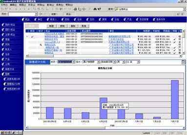 圖3下半部分的圖表是對上半部分的記錄進行表現(xiàn);上半部分的記錄,是根據(jù)一定的條件篩選出來的。在圖表中,可以選擇一些常用的參數(shù),如是全部公司的、還是某個分支機構(gòu)的、還是某個銷售代表的……