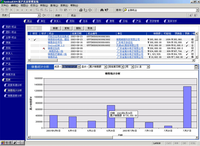 (1) 基于機會的"銷售分析統(tǒng)計圖表"
