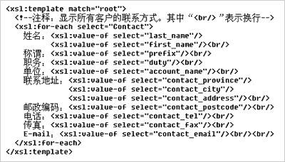 XSL采用結(jié)構(gòu)化描述。XSL遵循XML語(yǔ)法規(guī)范,結(jié)構(gòu)性、可讀性較強(qiáng)。經(jīng)過(guò)短時(shí)間學(xué)習(xí),渠道增值伙伴乃至用戶就可以掌握XSL描述要領(lǐng),改寫(xiě)或新建XSL模板,例如定制客戶化的報(bào)表。
