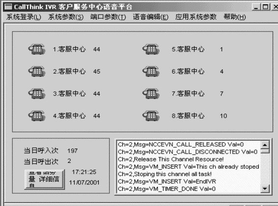 ● 監(jiān)控接口:對IVR通道進行實時監(jiān)控,一旦超出規(guī)定值或者系統(tǒng)部件不能正常運行,能夠立即以