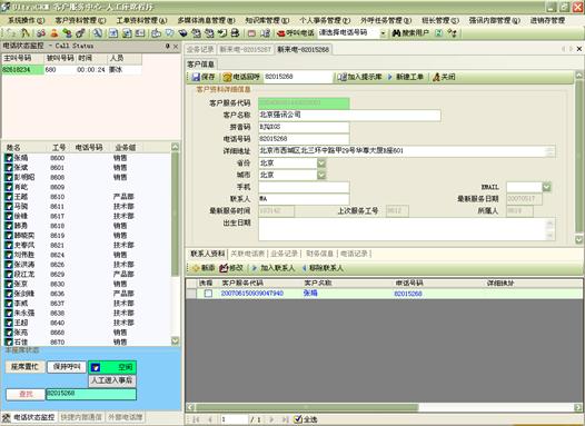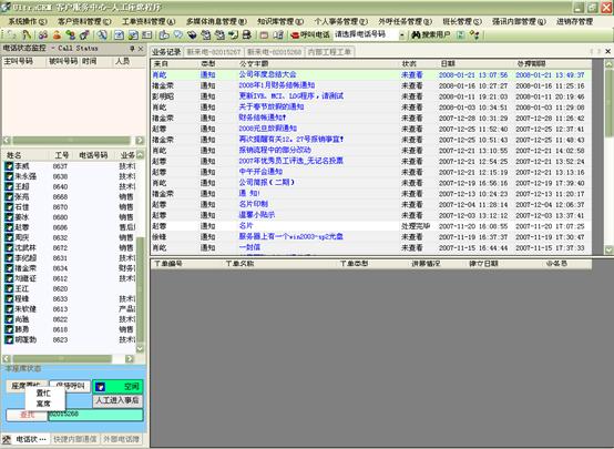 系統(tǒng)與CTI服務器配合,輕松實現(xiàn)諸如:最佳路由選擇、自動彈出客戶信息、座席通過屏幕控制電話接聽,轉接,會議,監(jiān)聽等。同時,系統(tǒng)支持由座席安排定時電話自動外撥、批量電話外撥、批量傳真發(fā)送、坐席通話錄音、坐席通話監(jiān)聽等服務。