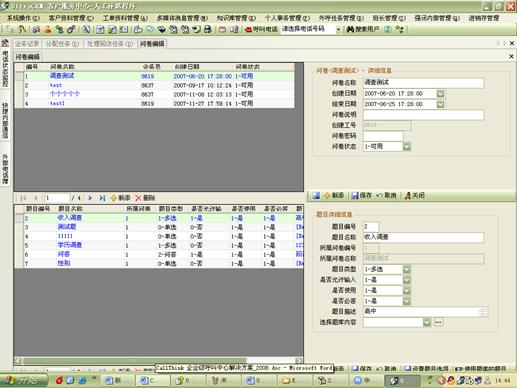 外呼中還可以建立問卷調查任務。同時還提供題庫管理、問卷編輯等功能,并且題目之間還可以設計流轉順序。方便使用者靈活設定問卷內容。如圖20、21所示: