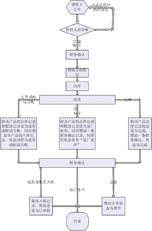 在呼叫中心系統(tǒng)中,為了更好地幫助企業(yè)進行銷售管理,UltraCRM系統(tǒng)設有進銷存管理。從產品的采購、入庫出庫、退貨、返廠處理、庫存管理、庫存盤點到財務確認都有一套完整的流程。參見圖7.22和7.23的產品入庫流程和出庫流程。所有在呼叫中心中進行銷售的產品數(shù)據(jù)都分類保存在系統(tǒng)的數(shù)據(jù)庫中,坐席人員可以根據(jù)產品型號、名稱、關鍵字等進行分類查詢。各類產品的基本參數(shù)、介紹也都包含在產品數(shù)據(jù)庫中,坐席人員可以很快地查到一項產品的基本信息,提高與用戶溝通的工作效率。