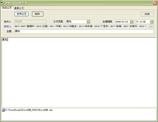 內部公文流轉實現(xiàn)了座席員(組)之間快速、高效的公文、通知、消息、文件傳送功能,如圖24和25所示: