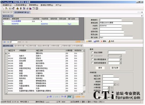 用于設(shè)定撥打不同地區(qū)電話的費(fèi)率以及節(jié)假日的折扣率。對于較復(fù)雜的計(jì)費(fèi)方式,同一個(gè)地區(qū)的電話還可以設(shè)定多種費(fèi)率。