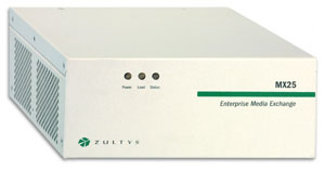 MX25 是一種能夠在兩種不同模式下工作的模塊化設(shè)備。在其中一種工作模式下,MX25 是一個(gè)通向 PSTN 網(wǎng)關(guān)的獨(dú)立 SIP。當(dāng)在這種模式下工作時(shí),MX25 轉(zhuǎn)換電話(huà)呼叫的格式,使其可以在 IP 網(wǎng)絡(luò)與公用電話(huà)網(wǎng)絡(luò)之間傳遞。另一種工作模式是,將 MX25 作為 MX250 的功能延伸系統(tǒng),用于不超過(guò) 25 個(gè)用戶(hù)的分支辦公室。在這種配置下,MX25 與 MX250 通信并交換有關(guān)用戶(hù)和設(shè)備的信息。即使連接 MX250 和 MX25 的 WAN 鏈路出現(xiàn)故障,MX25 也能繼續(xù)工作并處理來(lái)自/發(fā)往 PSTN 的傳入/傳出呼叫。