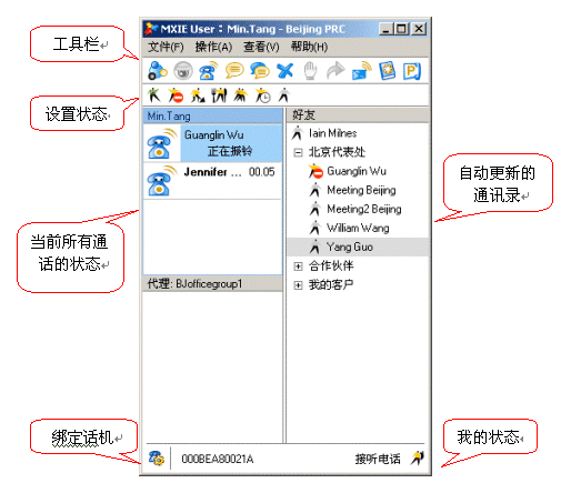MXIE是一個(gè)用戶端UCI(Unified communications Interface,統(tǒng)一通信界面)軟件。通過(guò)它可以實(shí)時(shí)設(shè)置或查看工作狀態(tài);使用自動(dòng)更新的通訊錄,無(wú)需撥號(hào)進(jìn)行呼叫;發(fā)送即時(shí)消息(IM:Instant Message,軟件和電話互發(fā));發(fā)送/收聽(tīng)語(yǔ)音郵件;群發(fā)/群收傳真;設(shè)置個(gè)性化的來(lái)電處理規(guī)則等。