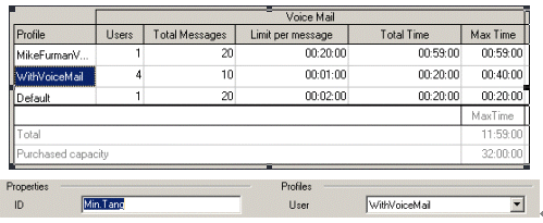 管理員可以指定用戶(hù)(分機(jī))是否具備語(yǔ)音郵箱功能,并可以指定用戶(hù)語(yǔ)音郵箱的屬性,如:語(yǔ)音郵件數(shù)量、時(shí)間長(zhǎng)度、總時(shí)間等。