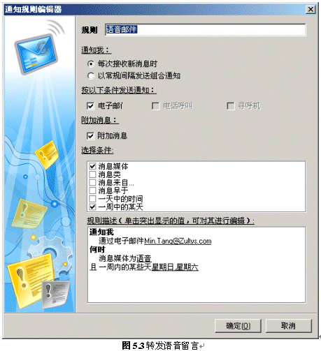 系統(tǒng)還可以將語(yǔ)音留言(或留言通知)直接發(fā)送到用戶(hù)的個(gè)人電子郵件信箱,以保證用戶(hù)外出時(shí)也能及時(shí)收聽(tīng)留言,如果用戶(hù)的電子郵件信箱支持手機(jī)短信功能,那么,當(dāng)有新留言時(shí),用戶(hù)就可以收到手機(jī)短訊。