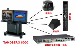 會(huì)議系統(tǒng)的組成非常簡單,每個(gè)會(huì)場(chǎng)安放一臺(tái)視頻會(huì)議終端,終端接上電視機(jī)作為回顯設(shè)備、接上網(wǎng)絡(luò)作為傳輸媒介就可以了。一臺(tái)終端通常有一臺(tái)核心編解碼器、一個(gè)攝像頭,一個(gè)全向麥克風(fēng)以及一個(gè)遙控器。核心編解碼將攝像頭和麥克風(fēng)輸入的圖像及聲音編碼通過網(wǎng)絡(luò)傳走,同時(shí)將網(wǎng)絡(luò)傳來的數(shù)據(jù)解碼后將圖像和聲音還原到電視機(jī)和音響上,即實(shí)現(xiàn)了與遠(yuǎn)端的實(shí)時(shí)交互。終端通過呼叫IP地址或ISDN號(hào)碼進(jìn)行連接(專線無需撥號(hào))。但在有三點(diǎn)會(huì)場(chǎng)就必須采用MCU(視頻會(huì)議多點(diǎn)控制單元)進(jìn)行管理。