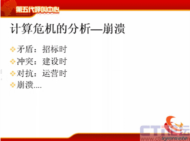 計算危機(jī)的下一方面是運(yùn)營管理者,可能在座很多人是做運(yùn)營管理的,你們會不斷去跟IT服務(wù)者提需求,我下一個月想引進(jìn)新的聯(lián)絡(luò)方式,下個月我想引進(jìn)新的軟件,引進(jìn)新的流程,我想增加KPI指標(biāo),我想增加現(xiàn)場的管理手段,我想提高座席的工作效率,后面也是不斷的,不斷地去引入新的聯(lián)絡(luò)方式。