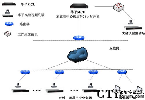 華平根據東森控股的實際需求,為用戶搭建了覆蓋上海、南昌、臺州辦公區(qū)、臺州營業(yè)部的高標清混合組網和軟硬件混合組網方案。系統(tǒng)基于公共互聯網實現部署,并充分利用了華平多種網絡接入混合的優(yōu)勢,并采取MCU雙網卡接入解決方案,全面實現了電信、網通的網絡良好互通,系統(tǒng)極大的拓展了應用的范圍,即使在差旅途中,只要能接入Internet網絡,用戶就可以輕松地參與會議交流,如同身與各方坐一個會議室。系統(tǒng)還提供強大的數據輔助功能,參會者可以將各種需要交流的數據、圖形、報表、文字等信息同步顯示給所有相關人員,方便的進行工作交流,業(yè)務匯報和討論等,使異地溝通變的更加簡單和自如。