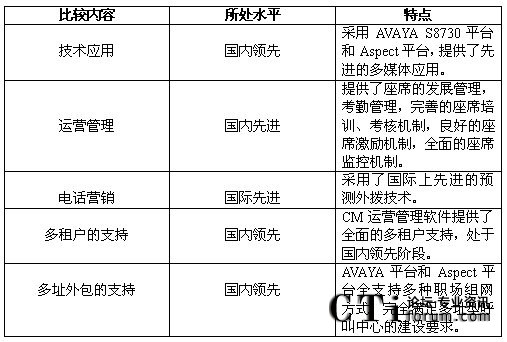 綜合比較,深圳電信商業(yè)呼叫中心的建設處于國內領先階段,有些技術甚至處于國際先進的水平。比較如下: