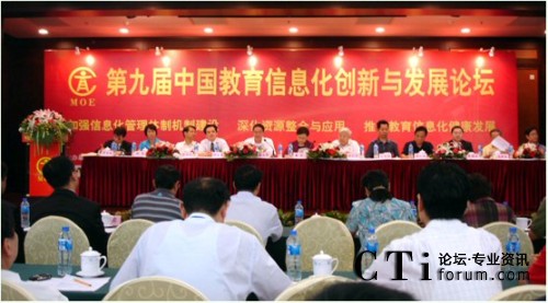 CTI論壇(ctiforum)07月16日消息: 2009年7月12日~7月13日,由教育部教育管理信息中心主辦的“第九屆中國(guó)教育信息化創(chuàng)新與發(fā)展論壇”在北京中苑賓館隆重召開(kāi)。來(lái)自各級(jí)教育行政部門的相關(guān)領(lǐng)導(dǎo),各類學(xué)校的主管校長(zhǎng)、信息化部門負(fù)責(zé)人參加了此次論壇,開(kāi)幕式上教育部副部長(zhǎng)魯昕同志發(fā)表了重要講話,為教育事業(yè)的改革與發(fā)展指明了方向。