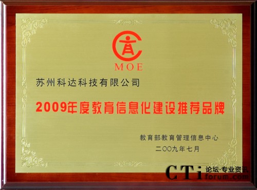 科達(dá)獲“2009年度教育信息化建設(shè)推薦品牌”