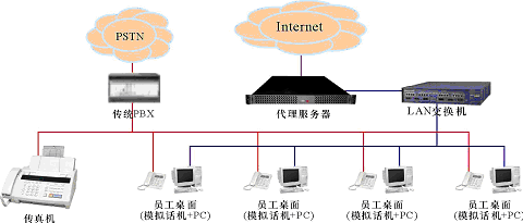 。。某中小企業(yè),無分支機(jī)構(gòu),現(xiàn)時有一個由傳統(tǒng)PBX構(gòu)建的電話系統(tǒng)和一個以太局域網(wǎng),兩者相互獨(dú)立,局域網(wǎng)通過一臺代理服務(wù)器用以太網(wǎng)或ADSL方式接入Internet。企業(yè)的語音通信由電話系統(tǒng)實現(xiàn);員工的日常工作需要使用計算機(jī)以及多種局域網(wǎng)和Internet服務(wù)(如文件共享、網(wǎng)絡(luò)打印、瀏覽網(wǎng)頁、收發(fā)郵件等),這些服務(wù)通過局域網(wǎng)提供,目前,在企業(yè)的經(jīng)營管理上還沒有應(yīng)用相關(guān)的業(yè)務(wù)系統(tǒng)(如工作流、ERP、CRM等)。