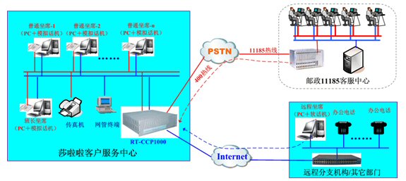 IP分布式特點:對于莎啦啦這樣一個企業(yè)級客戶而言,呼叫中心只是企業(yè)的一個部門,這個部門需要與企業(yè)的其他部門協(xié)同工作,才能最大限度的發(fā)揮呼叫中心的作用。這就要求莎啦啦所部署的呼叫中心系統(tǒng)具備極為便捷的擴展能力,在需要其他部門響應(yīng)客戶服務(wù)時,能夠?qū)⑵渌块T的相關(guān)人員立即升級為更專業(yè)的二線坐席來協(xié)同處理。而傳統(tǒng)的呼叫中心系統(tǒng)中,在需要協(xié)同服務(wù)時,臨時部署二線坐席或者辦公電話,顯然是不可能的,而為其他部門設(shè)立專家坐席,對于資金有限的企業(yè)而言,其成本和收益往往又不成比例。那么基于IP的技術(shù)則可以非常輕松的解決這一矛盾。RT-CCP1000自帶的免費軟電話,能夠通過標準的SIP或者H.323協(xié)議和局域網(wǎng)使莎啦啦的任何專業(yè)人員可以立即加入到整個呼叫中心系統(tǒng)坐席組中。