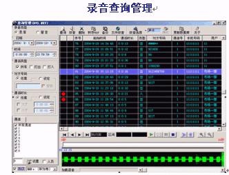 - 可按日期、時間、電話號碼、線路、人員等條件進行查詢放音;支持語音卡放音、聲卡放音等。