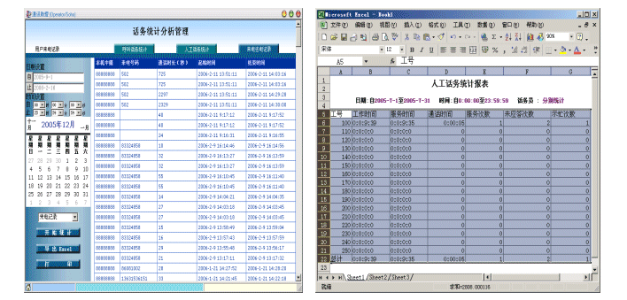 詳細(xì)的話務(wù)記錄和話務(wù)統(tǒng)計(jì)分析,可生成各類表、圖表,并可以到出為Excel報(bào)表。