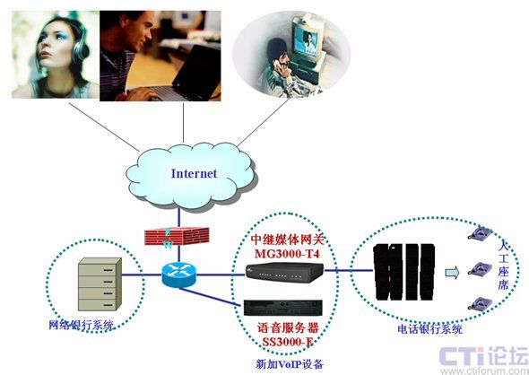 提高安全性,平臺(tái)位于防火墻后,不設(shè)公網(wǎng)地址:眾所周知,VoIP的通話(huà)必須要有一個(gè)在公網(wǎng)上的平臺(tái)來(lái)控制。但由于銀行方面的安全性要求,軟交換平臺(tái)必須位于防火墻之后,并且不能配置真實(shí)的公網(wǎng)IP。為了適應(yīng)此要求,高鴻公司的軟交換平臺(tái)支持NAT后的工作模式。