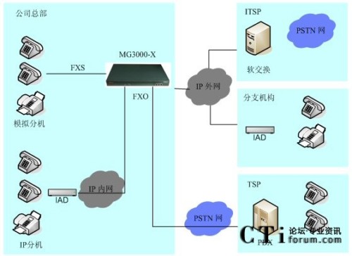 MG3000-X100替代傳統(tǒng)PBX交換機(jī)應(yīng)用方案 2009-09-23