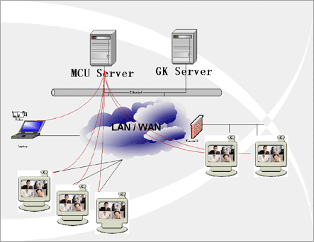 在企業(yè)內(nèi)部局域網(wǎng)與INTERNET連接處,會設置FIREWALL防火墻,而IP語音視頻會議采用的ITU H.323協(xié)議本身不具備穿越防火墻的特性,因此需要防火墻穿越軟件。
